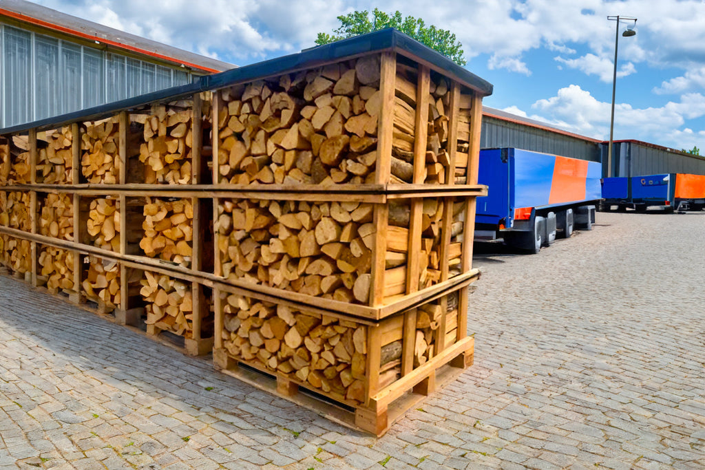 Natürlich luftgetrocknetes Holz (geringer CO2-Fußabdruck) mit einer Feuchtigkeit zwischen 10 und 20 % je nach Holzart und Jahreszeit