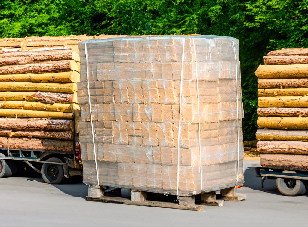 Dadurch ist die Verbrennung ideal und sauber, während die Ausbeute außergewöhnlich hoch bleibt. Ein vergleichbares Holz in Form einer Palette wiegt 960 kg, im Vergleich dazu wiegt eine Palette Holz 800 Kilogramm (2 Kubikmeter).